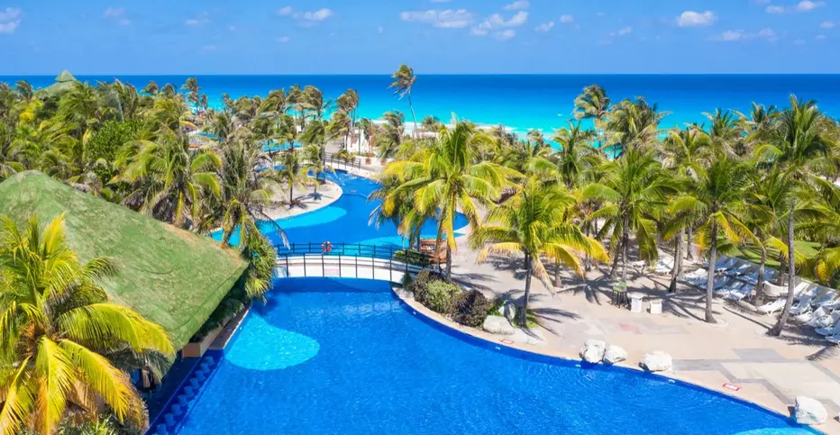 Este lujoso complejo turístico todo incluido, ubicado entre el mar Caribe y la laguna Nichupté, se encuentra a 3 km de las ruinas mayas en la zona arqueológica El Rey.