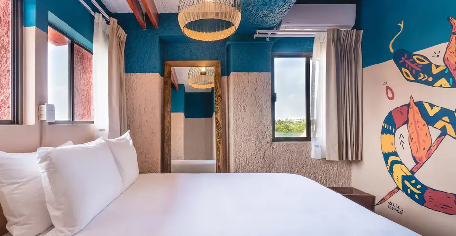 Este hostal moderno con murales llamativos ubicado frente a una laguna está a 11 minutos a pie de la playa Chac Mool, a 3 km del Interactive Aquarium Cancún y a 24 km del aeropuerto internacional de Cancún.